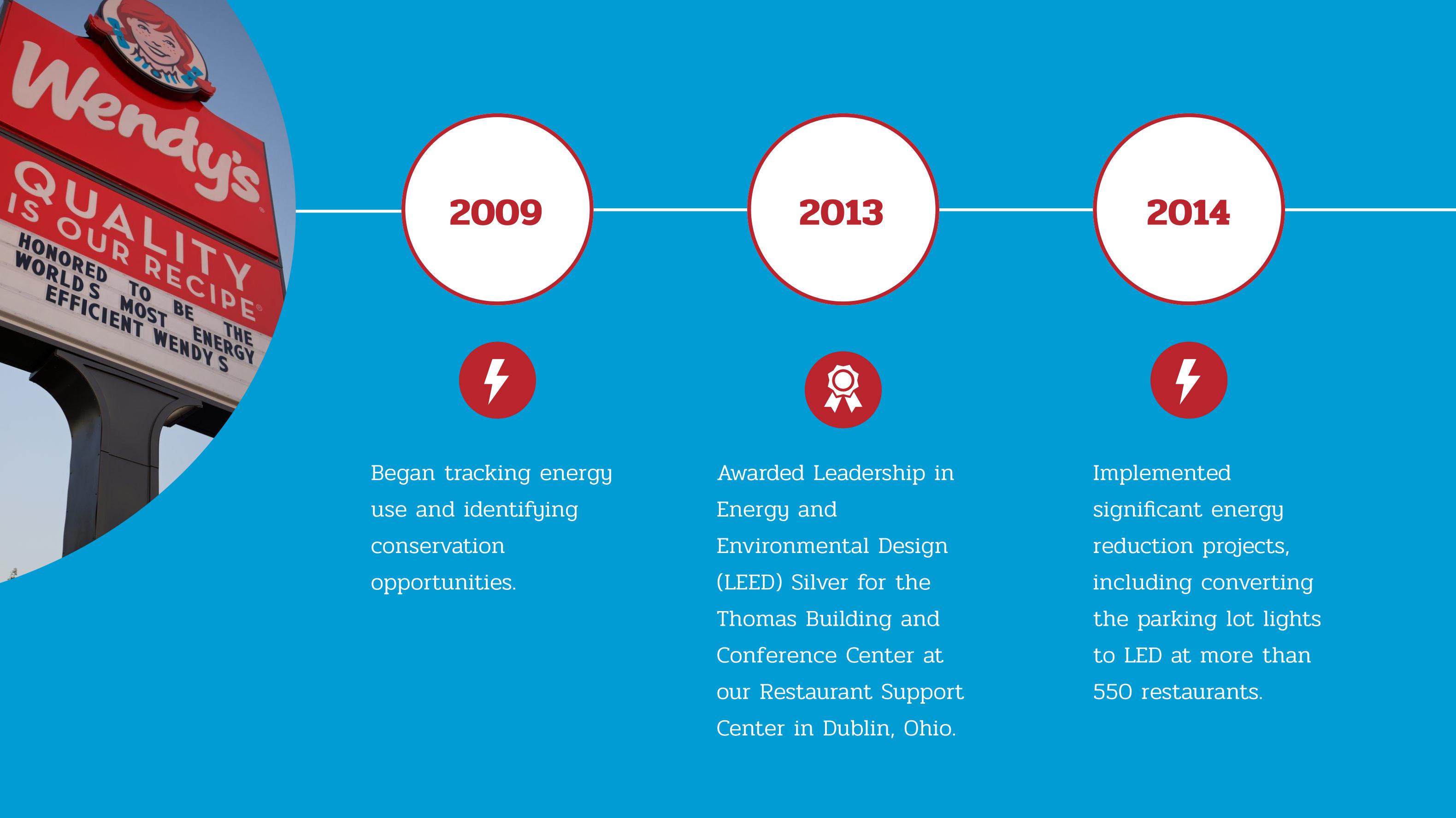 - Engaging franchisees to reduce emissions through the Wendy’s Energy Challenge