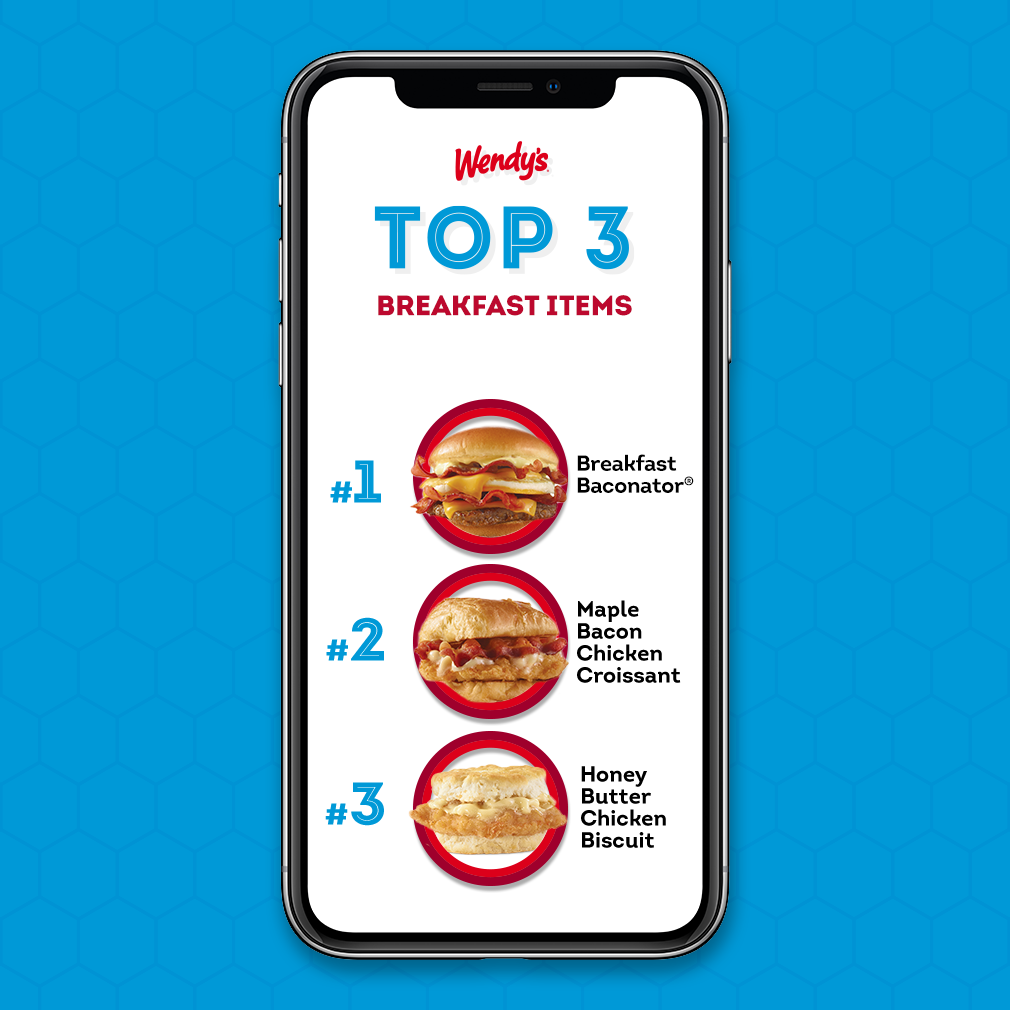From biscuits to English muffins to flaky croissants, Wendy’s breakfast sandwich lineup has it all. The top breakfast sandwiches from fans in 2023 were the Breakfast Baconator®, Honey Butter Chicken Croissant and Maple Bacon Chicken Biscuit, a true variety of flavors to satisfy all of your morning cravings.