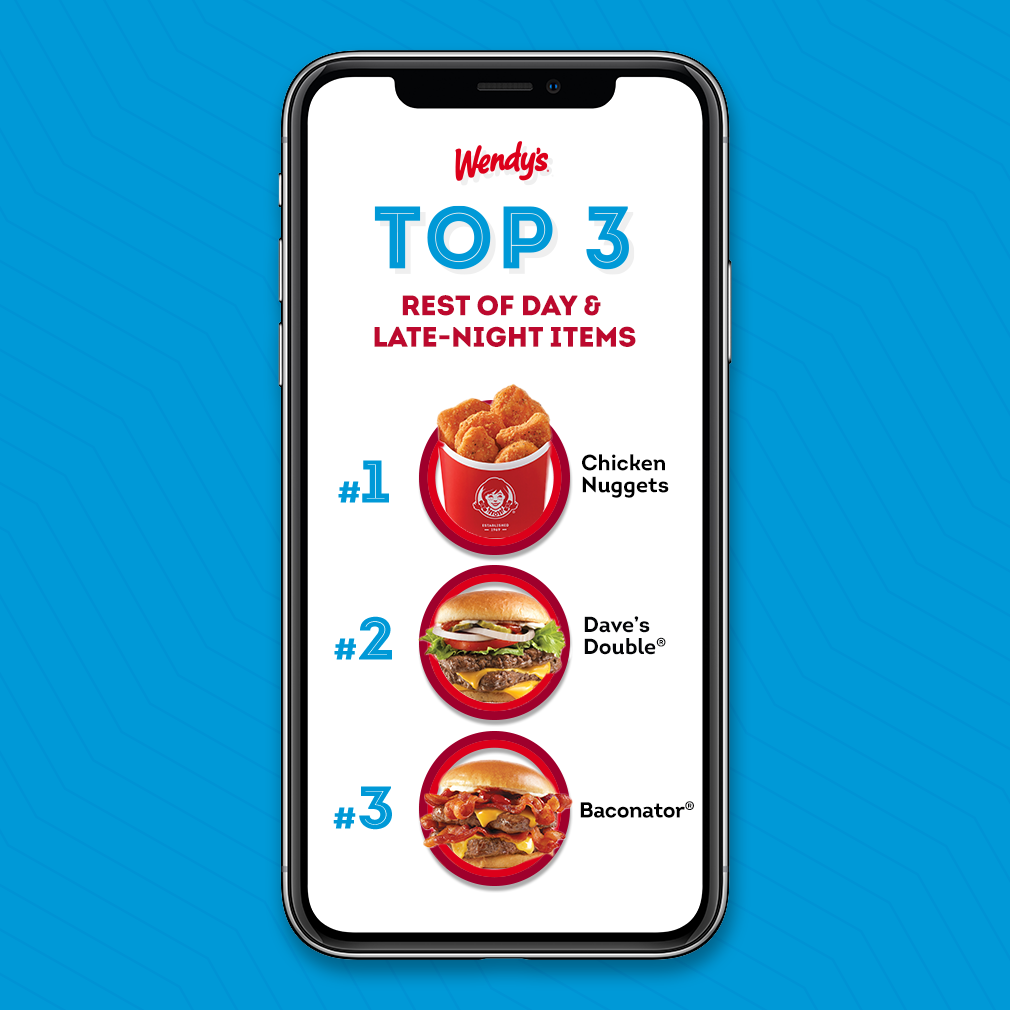 From lunchtime to late-night and every meal in between, our fans’ top entrée orders didn’t disappoint, featuring fan-favorite chicken, fresh never frozen beef* and Wendy’s signature Applewood smoked bacon. Wendy’s top three most ordered items included Chicken Nuggets (Spicy or Classic), the classic Dave’s Double® and of course, Wendy’s signature Baconator®.